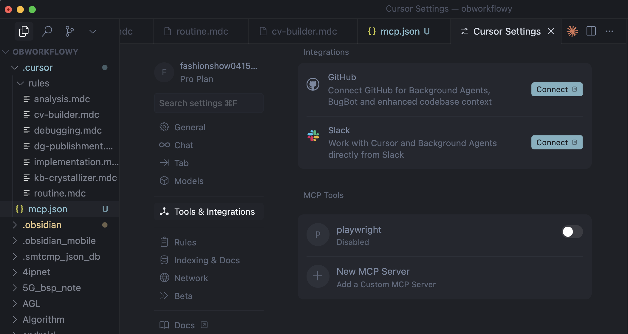 貼上 json 在 .cursor/mcp.json 然後在 Cursor 中 enable